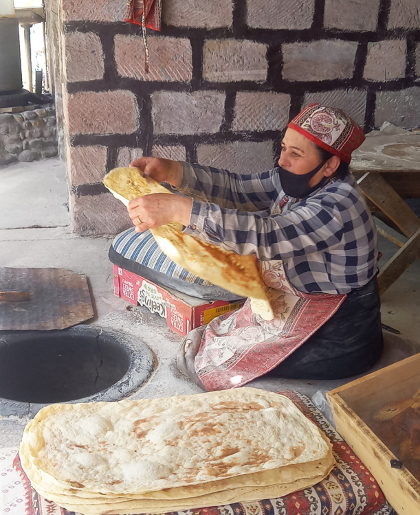 Then we will visit the Geghard Monastery. Some of the churches are dug out of the cliff rocks and decorated with unique bas-reliefs. On the way to the monastery, we’ll stop at the Charents Arch, which reveals an impressive view of Mount Ararat. We’ll also learn how to bake lavash — traditional flatbread — together with local bakers. And enjoy it warm, with cheese and fresh herbs.