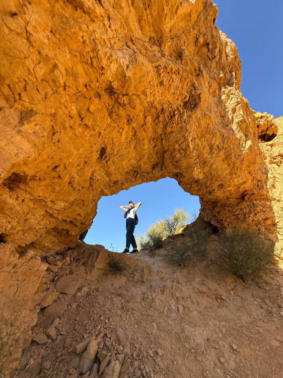 Then we’ll take a walk in the picturesque Angels’ Canyon. We will go along a narrow path between steep yellow rocks, and at the end of the path we’ll find a surprise – a natural mineral spring.