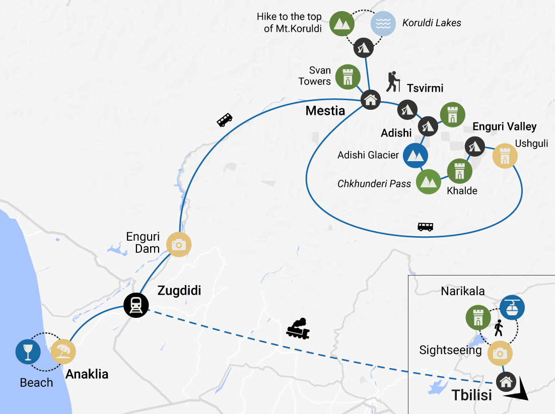 The cultural part of the program includes sightseeing walks around Tbilisi, Mestia and Ushguli, and in the final part of the tour we’ll have time to relax on the Black Sea coast!