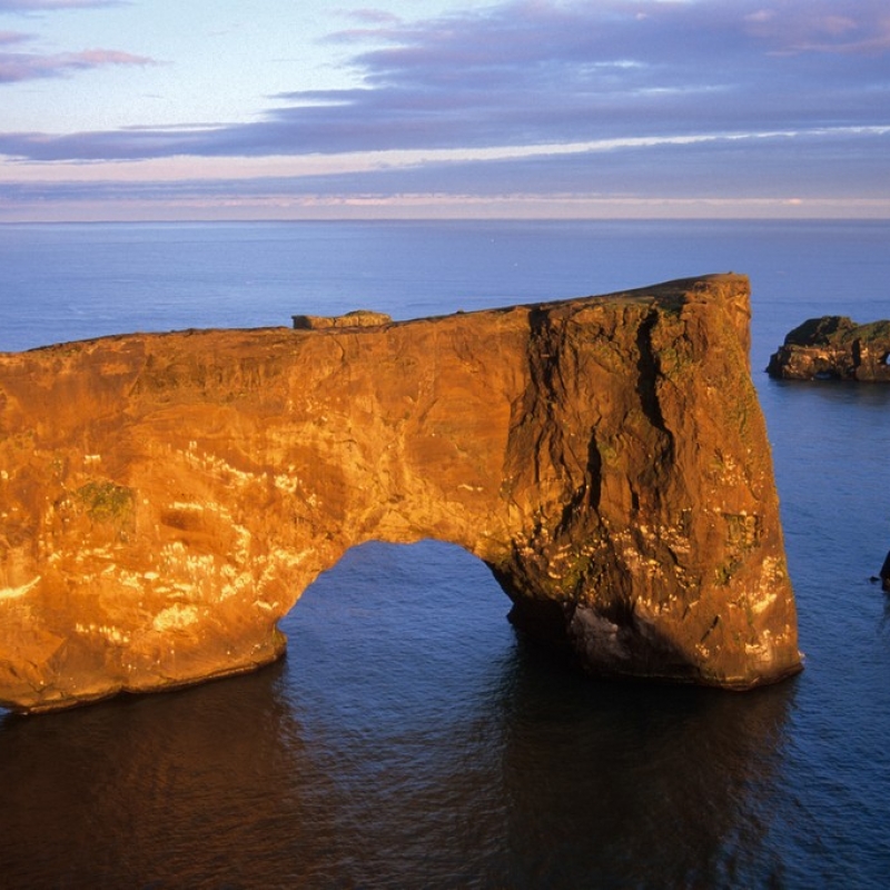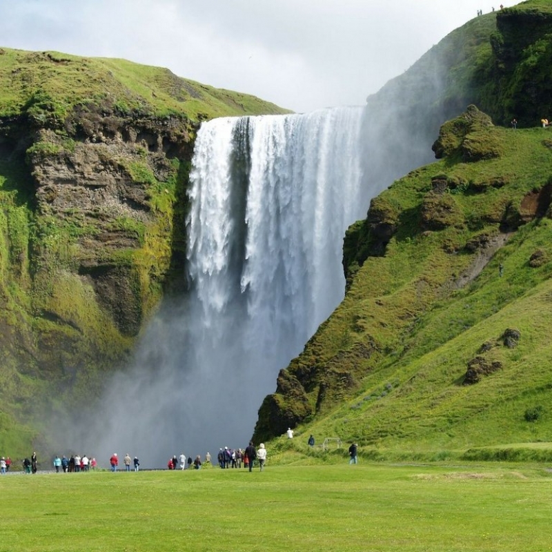 Then we’ll see the huge Myrdalsjokull glacier hiding the insidious Katla volcano underneath, which is famous for its destructive eruptions with ash clouds and devastating floods. The legendary Eyjafjallajökull volcano is also nearby.