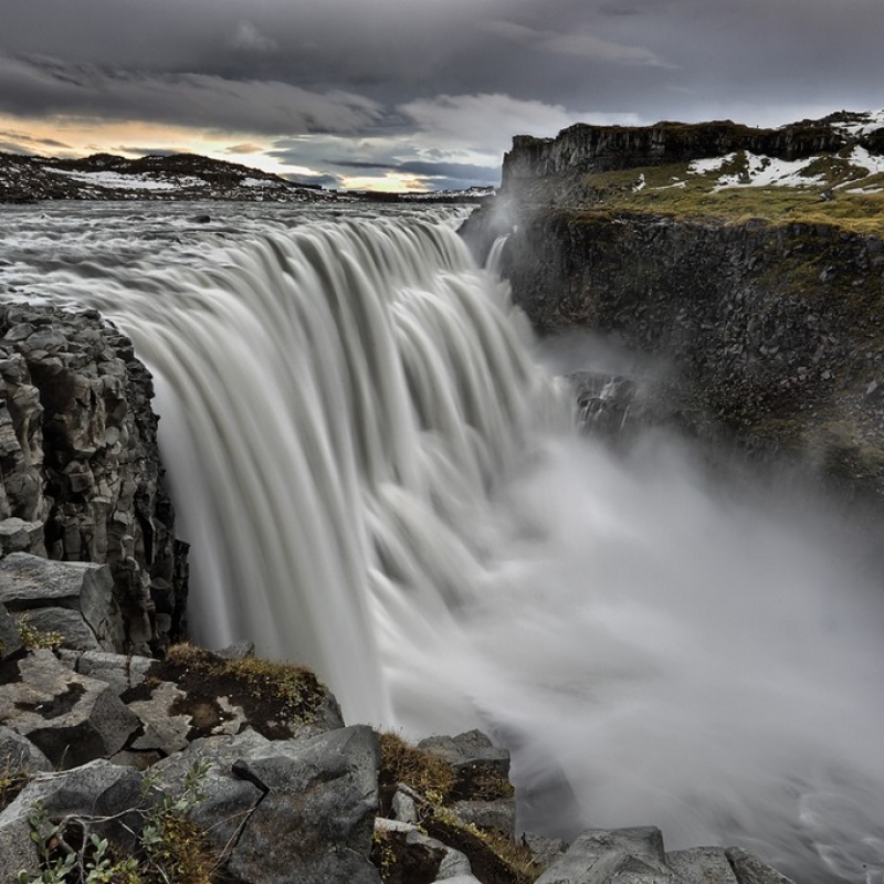 Then we’ll continue our way to the Godafoss Waterfall with a wide 30-meter stream falling down from the dark basalt rocks.