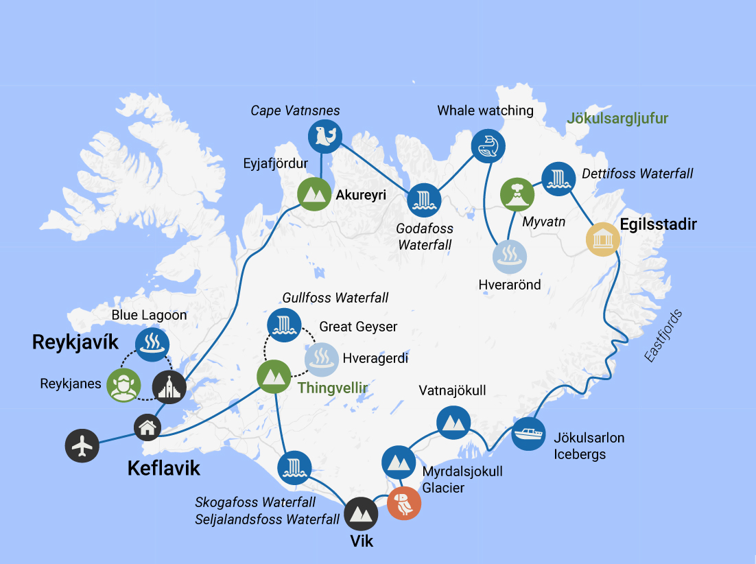 This is a convenient weekend-to-weekend itinerary that nonetheless covers all of Iceland’s best spots, from the famous waterfalls to mystical volcanic landscapes.