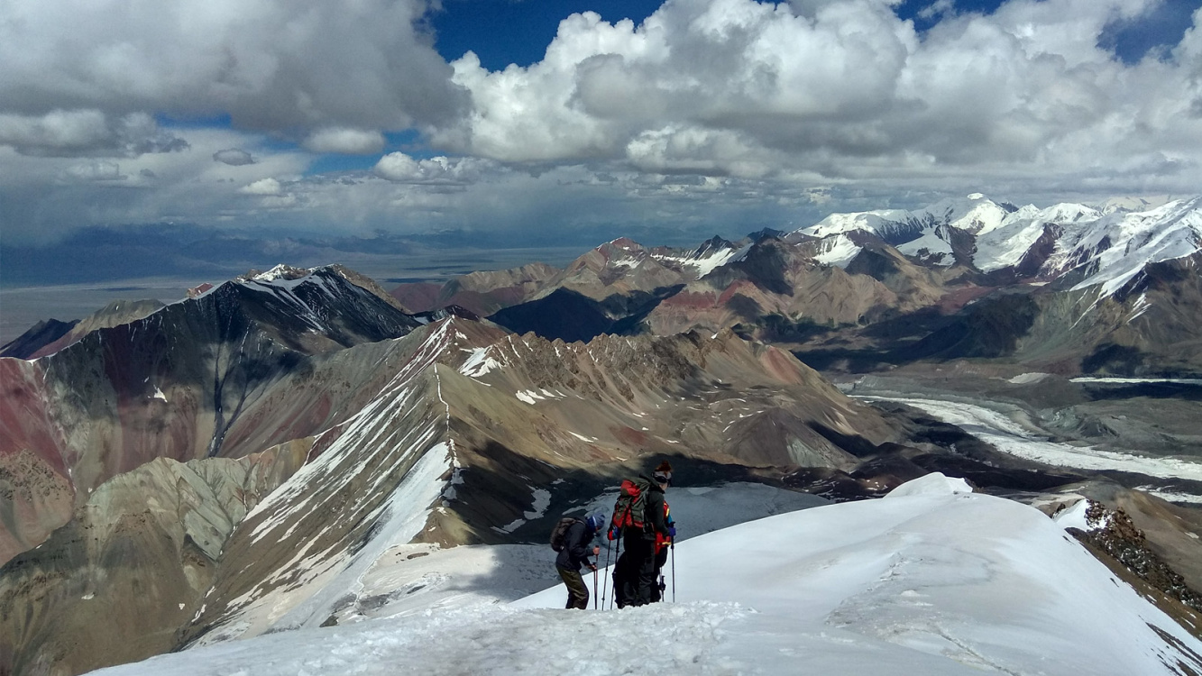 Today you will have an acclimatization hike to the crest of Petrovsky Peak. You will go up to a height of 4,150 m, which offers majestic views of the Alai Valley, the pearls of lakes scattered between the ridges, and the majestic Lenin Peak in all its glory.