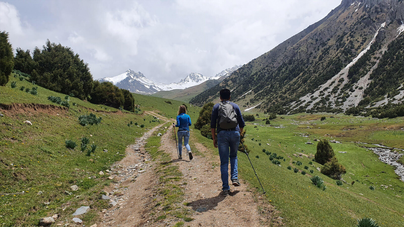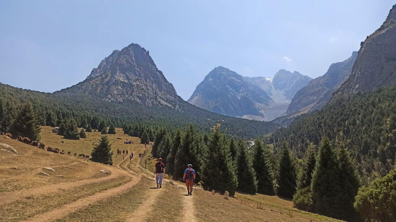 Your exciting journey begins! You will go to the Kyrgyz-Ata National Park to get acclimated before high-altitude walks. The park is located on the slopes of the Alay Range. You will enjoy the impressive views of sharp mountain peaks, green meadows and juniper forests. After a short walk, you will visit a yurt camp and get acquainted with the life of nomads, have lunch and also taste kumis, a fizzy sour-milk drink that perfectly quenches thirst.