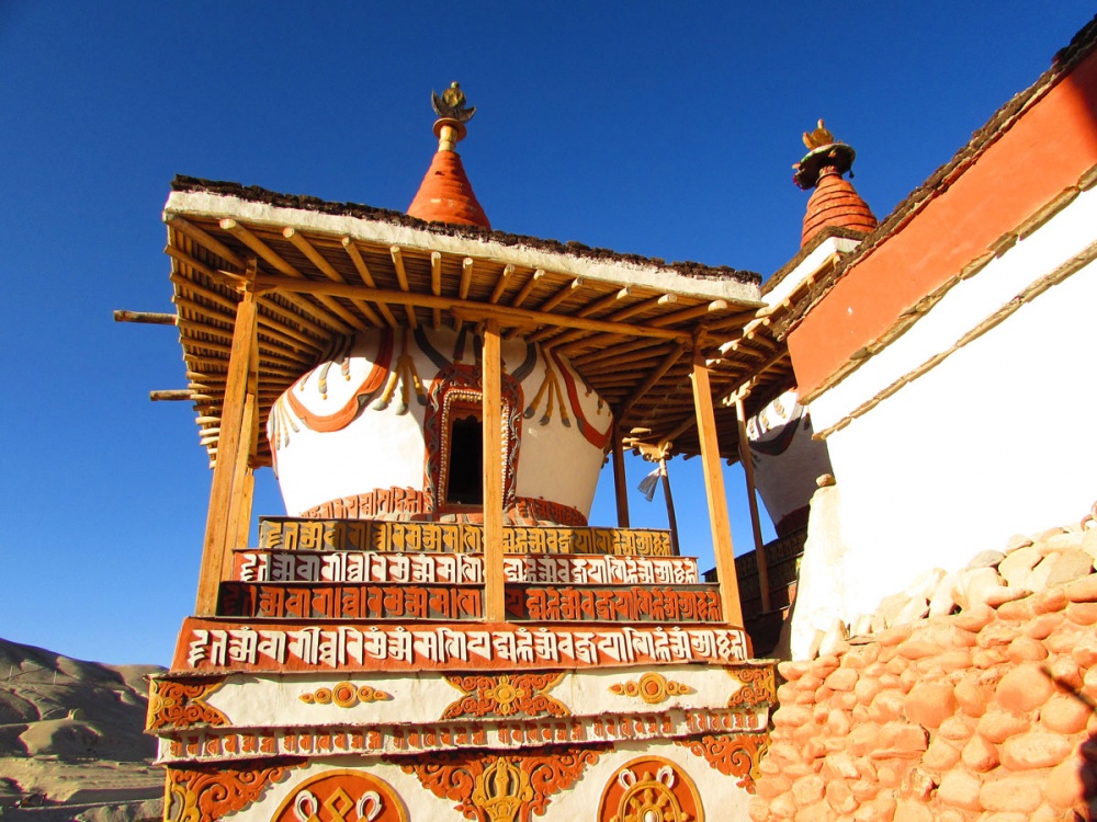 Upon arrival in Tsarang we’ll go for a walk around the village to see the famous Royal Palace. As legend says, the hands of its architect were cut off by the order of the king who wished that his palace was unique. We’ll also visit the local monastery, where more than a hundred sacred books written in gold ink are kept.