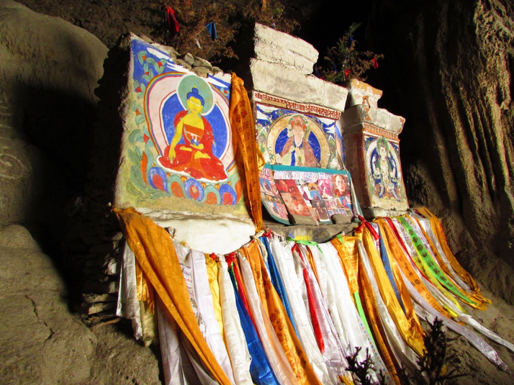 Along the path among the peach trees, we’ll go up to the Chorate Pass (3,980 m), and then descend into the picturesque canyon, where the sacred Ranchung Chungsi Cave is located. Since the 8th century, buddhists from different parts of the world have come here to meditate, find harmony and fill up their energy reserves. It is believed that in ancient times the stones from this cave were used to treat back pain.