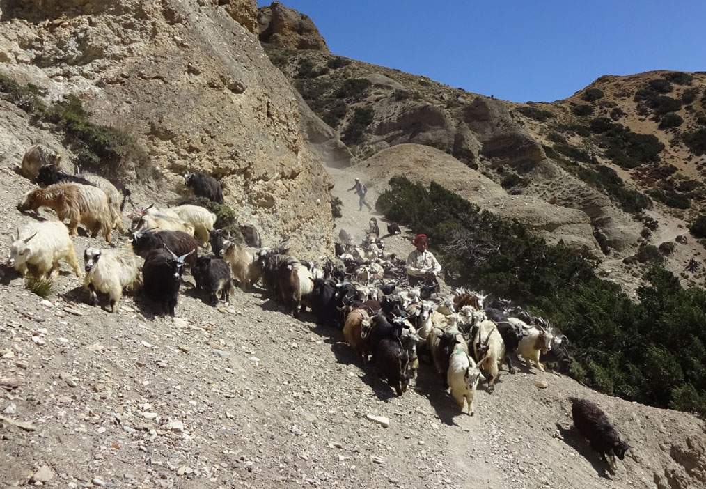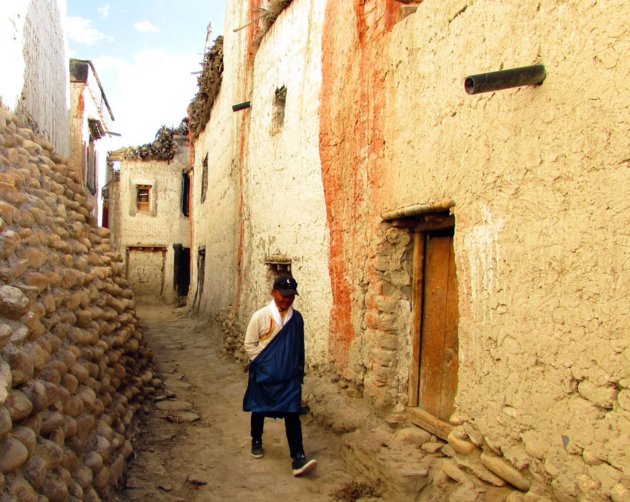 Next we’ll go up to the Nyi La Pass (4,010 m) and descent into the village of Ghami. There, we will stay overnight in a truly special place — a hotel managed by relatives of the last King of Mustang.