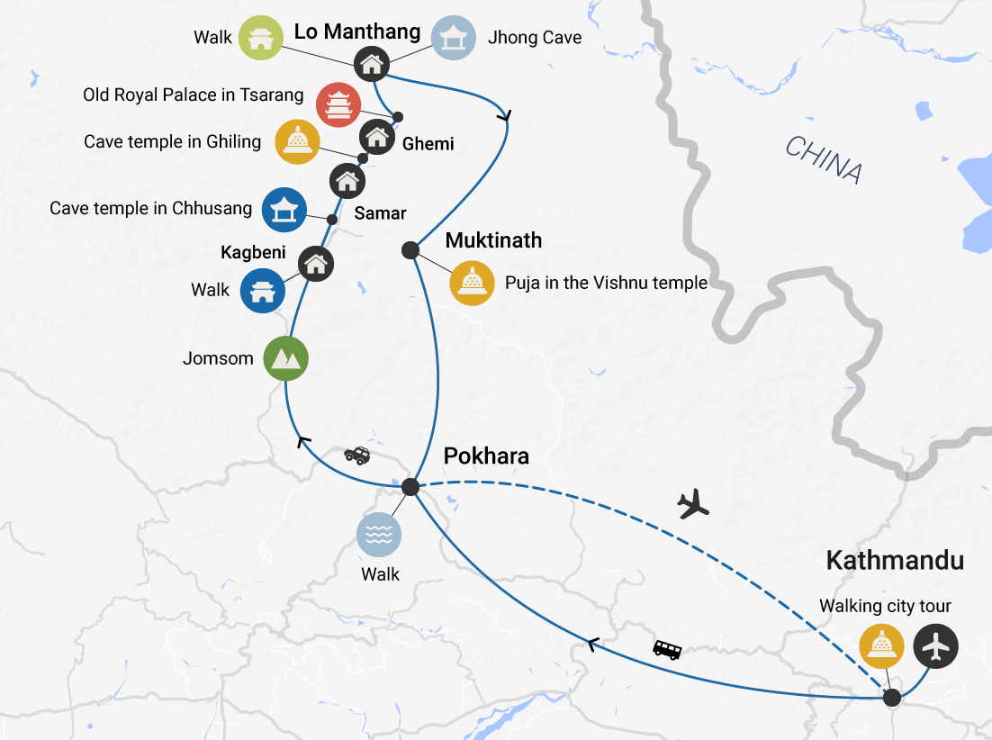 All basic expenses are included: transfers along the route, domestic flights, Upper Mustang permit fee.