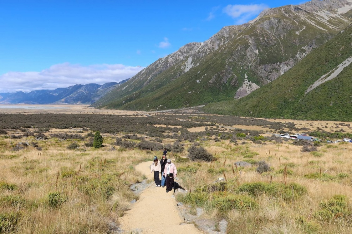 After breakfast, we head to the highest point in the country — Mount Cook (3,724 m). About 40% of this national park is covered by glaciers. We will enjoy a comfortable trek along well-maintained trails, allowing us to experience the rugged beauty of the high country up close. If you wish, you can book a 50-minute helicopter flight with a landing on the snow (optional, paid separately).