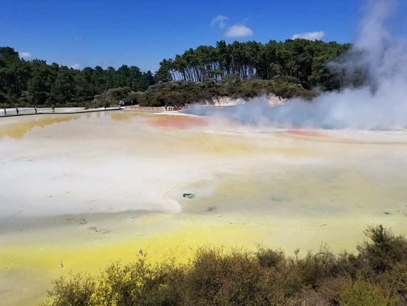 Our day begins with a visit to Wai-O-Tapu Geothermal Park, a showcase of New Zealand’s otherworldly natural wonders. We’ll marvel at the Champagne Pool, its surface bubbling with vibrant colors, and the striking neon-green Devil’s Bath.