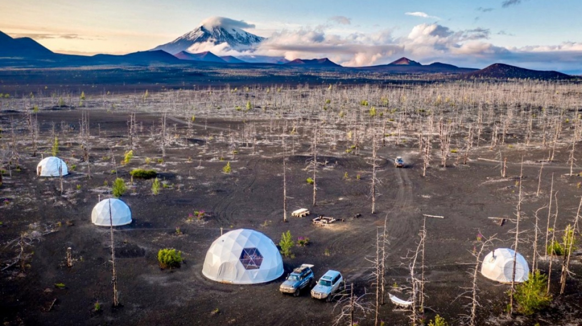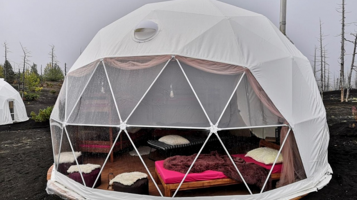 We will spend 3 nights away from civilization in the area of the Tolbachinsky volcano. There are two options of accommodation in this area: tents or glamping. All our tents are modern and reliable, they don't get wet in the rain and retain heat well. The price of the tour includes rental of high-quality professional personal equipment: a sleeping bag for up to -5 °C and a thick two-layer travel mat. Glampings are heated and also have panoramic views of the local beauty.