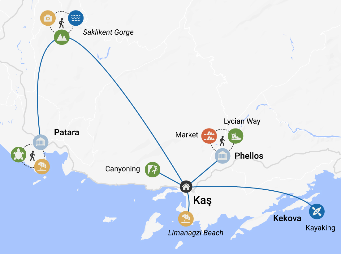 Every day we’ll try something new: kayaking, canyoning, trekking along the famous Lycian Way, exploring ancient history. And, of course, we’ll dedicate some time to swimming and relaxing on the beach.