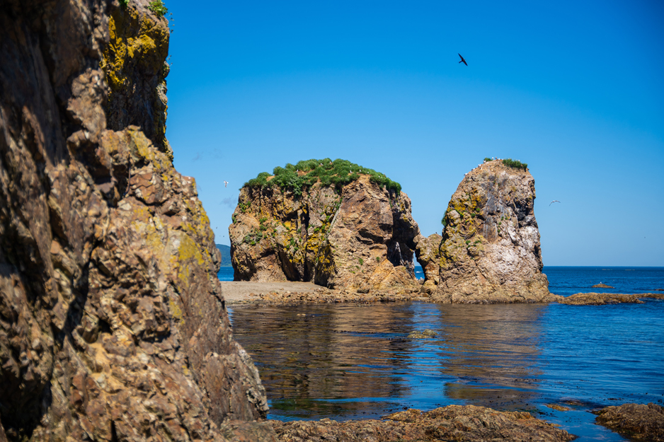 Once you arrive, you will enjoy an easy walk along the coastline and explore the capes of Ptichiy and Velikan. Nature has done its best in these places: huge stone arches, cliffs, and majestic columns rise above the land and water. The largest monolith resembles the profile of a giant, which is why the cape was named this way. “Velikan” means “a giant” in Russian. Birds nest in these areas, so you will have the opportunity to observe their habitats. We’ll have lunch with Far Eastern delicacies in a picturesque spot, relax and return to the hotel in Yuzhno-Sakhalinsk.