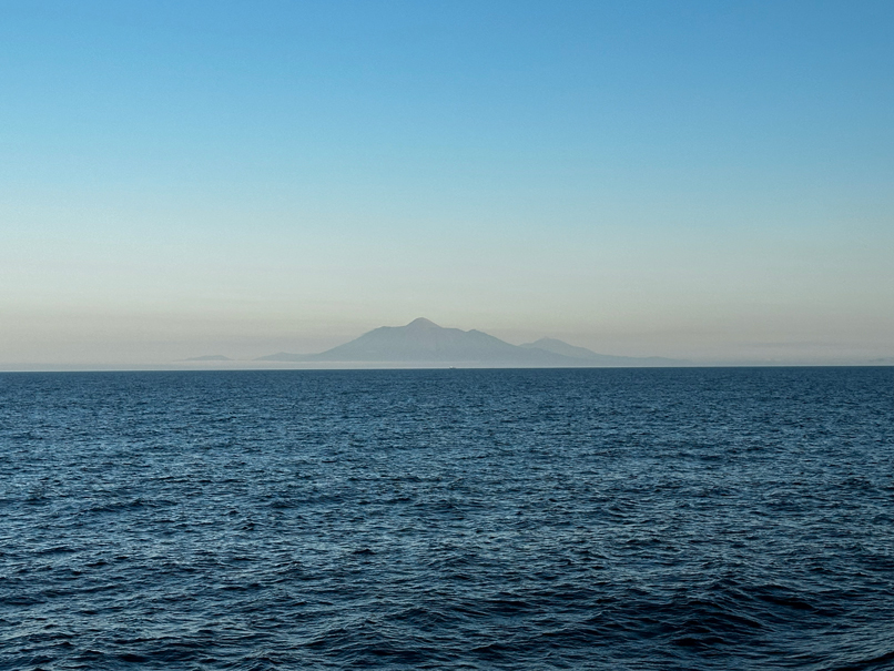 You will spend the day on a boat. You can relax after active days in Kunashir and enjoy the open spaces of the sea. If you're lucky, you might spot dolphins overboard.