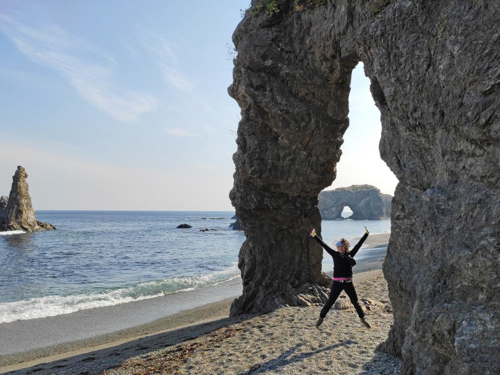 Once you arrive, you will enjoy an easy walk along the coastline and explore the capes of Ptichiy and Velikan. Nature has done its best in these places: huge stone arches, cliffs, and majestic columns rise above the land and water. The largest monolith resembles the profile of a giant, which is why the cape was named this way. “Velikan” means “a giant” in Russian. Birds nest in these areas, so you will have the opportunity to observe their habitats. We’ll have lunch with Far Eastern delicacies in a picturesque spot, relax and return to the hotel in Yuzhno-Sakhalinsk.