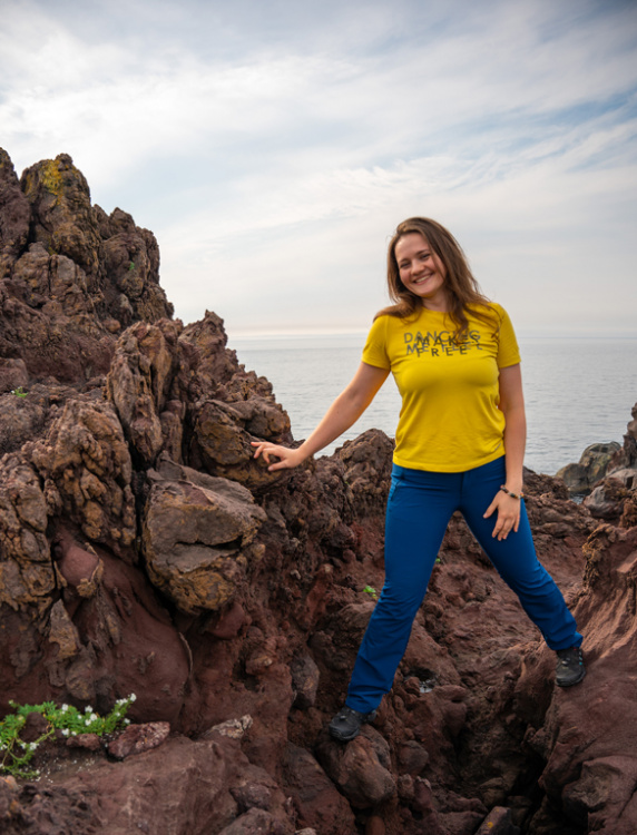 Today you will visit one of the most unusual places on Earth — Cape Stolbchaty. It was formed from the solidified lava of the Mendeleev volcano, which split into five- and six-sided columns.