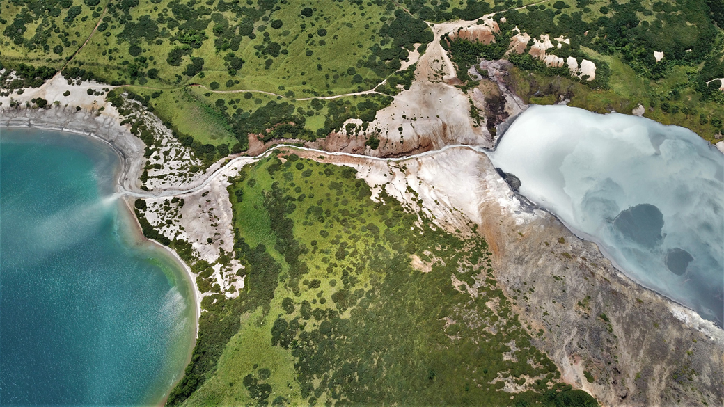 You will reach the caldera of the volcano, which is 4 km in diameter! At the bottom of it there are four domes and two seething lakes — Kipyashcheye and Goryacheye. Kipyashcheye is not suitable for swimming, but plunging into the Goryacheye Lake is a pleasure. There are also magnificent panoramic views opening from the hills.